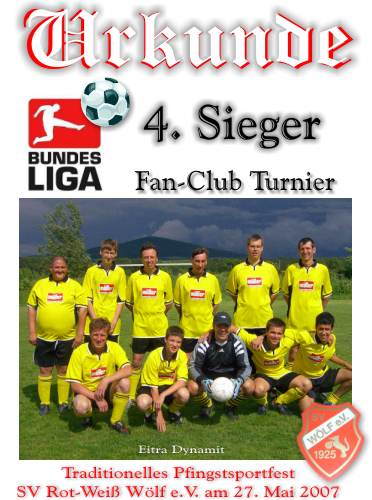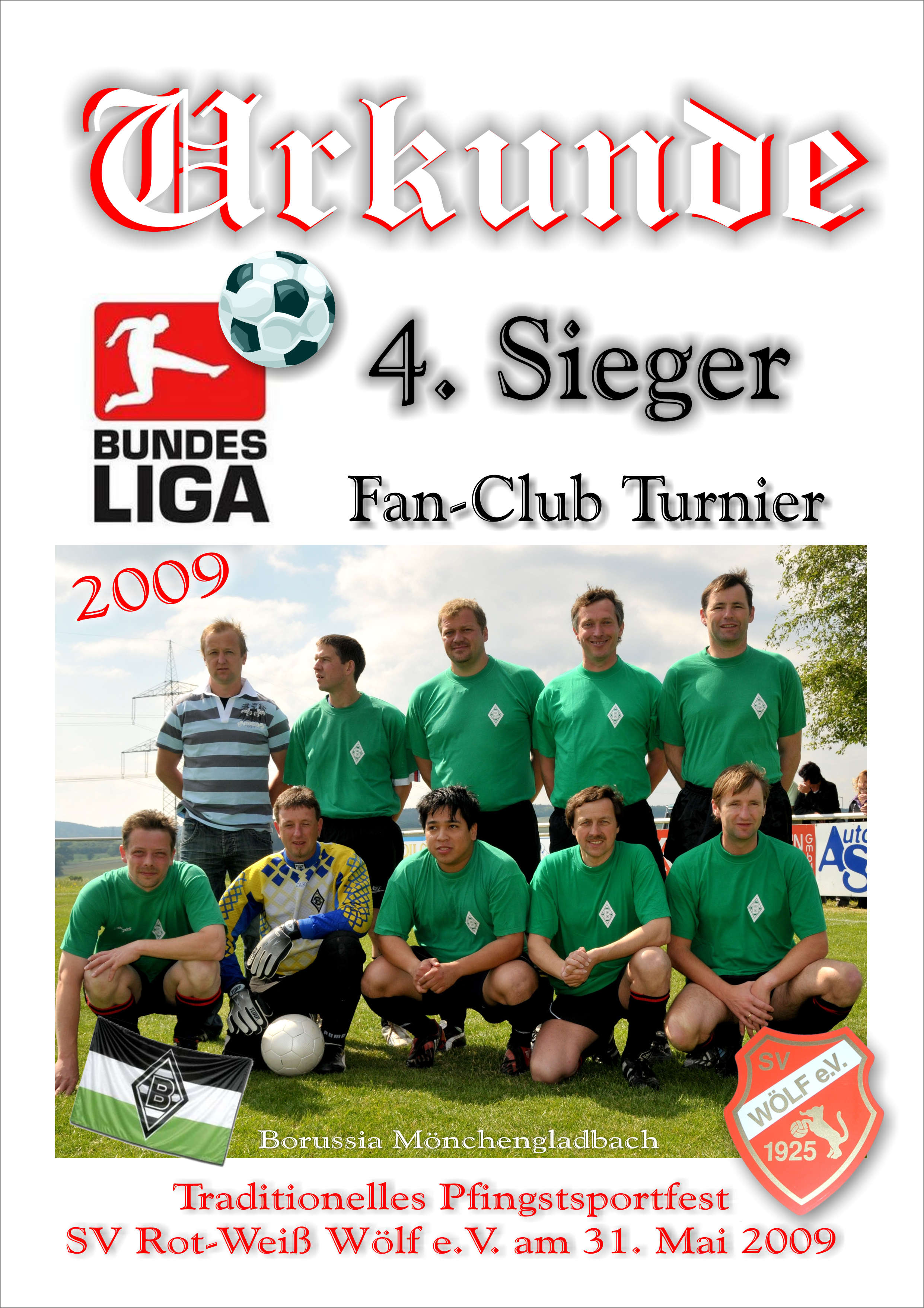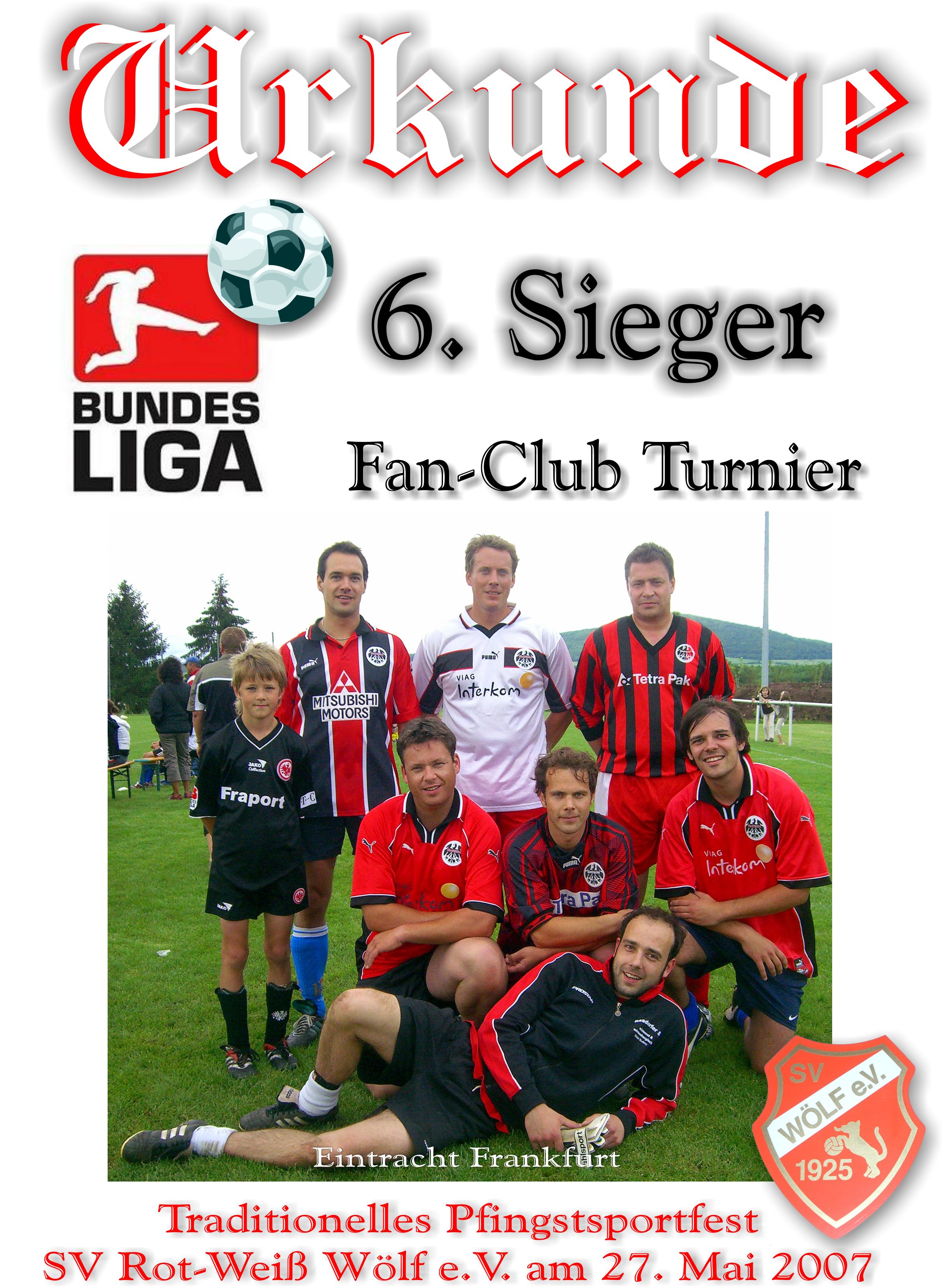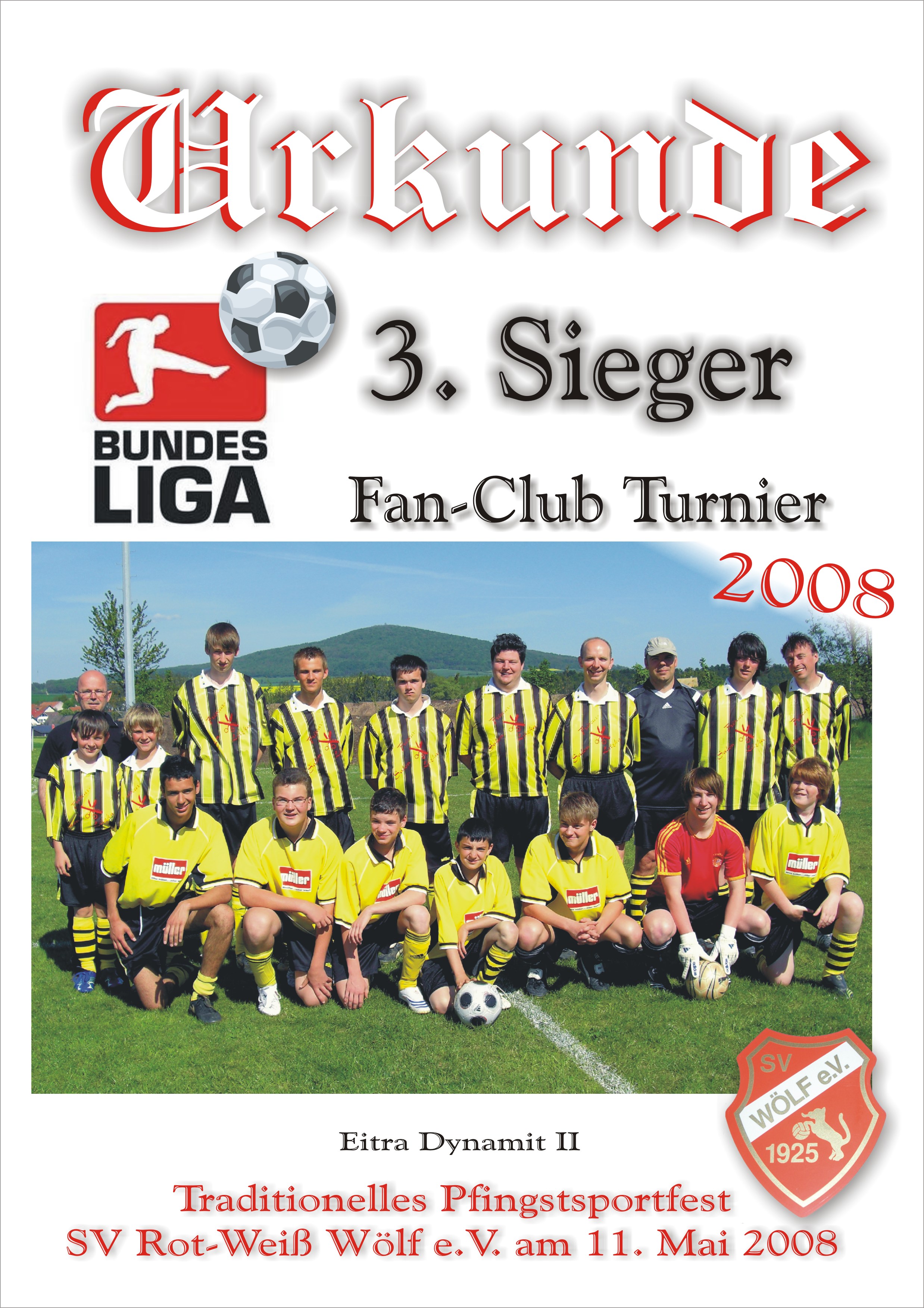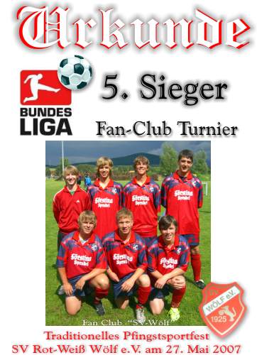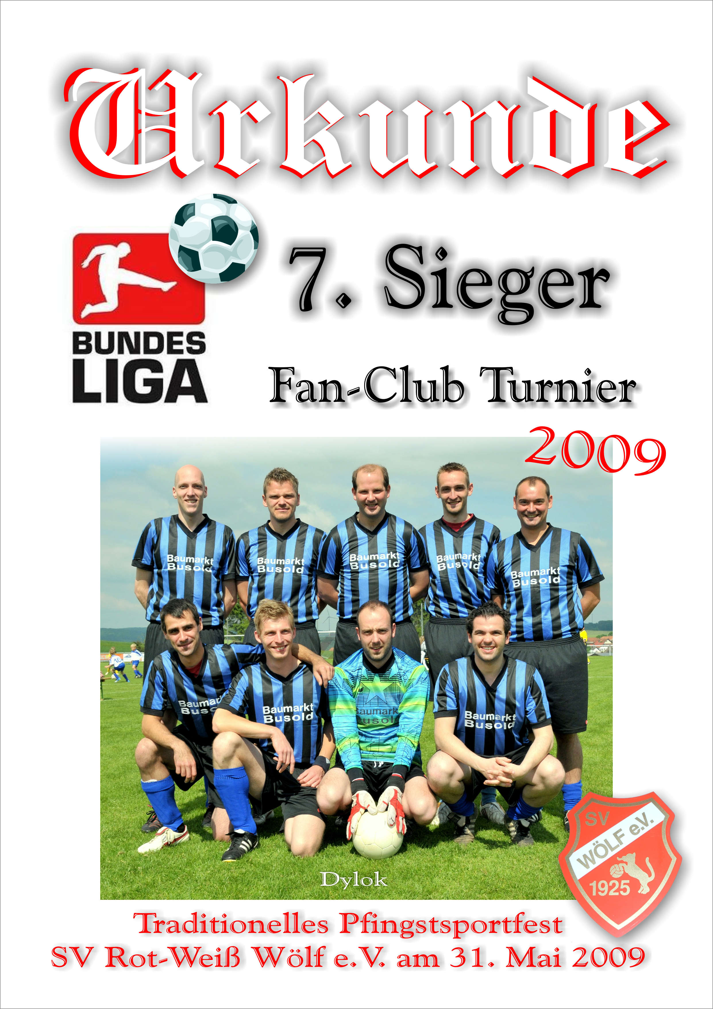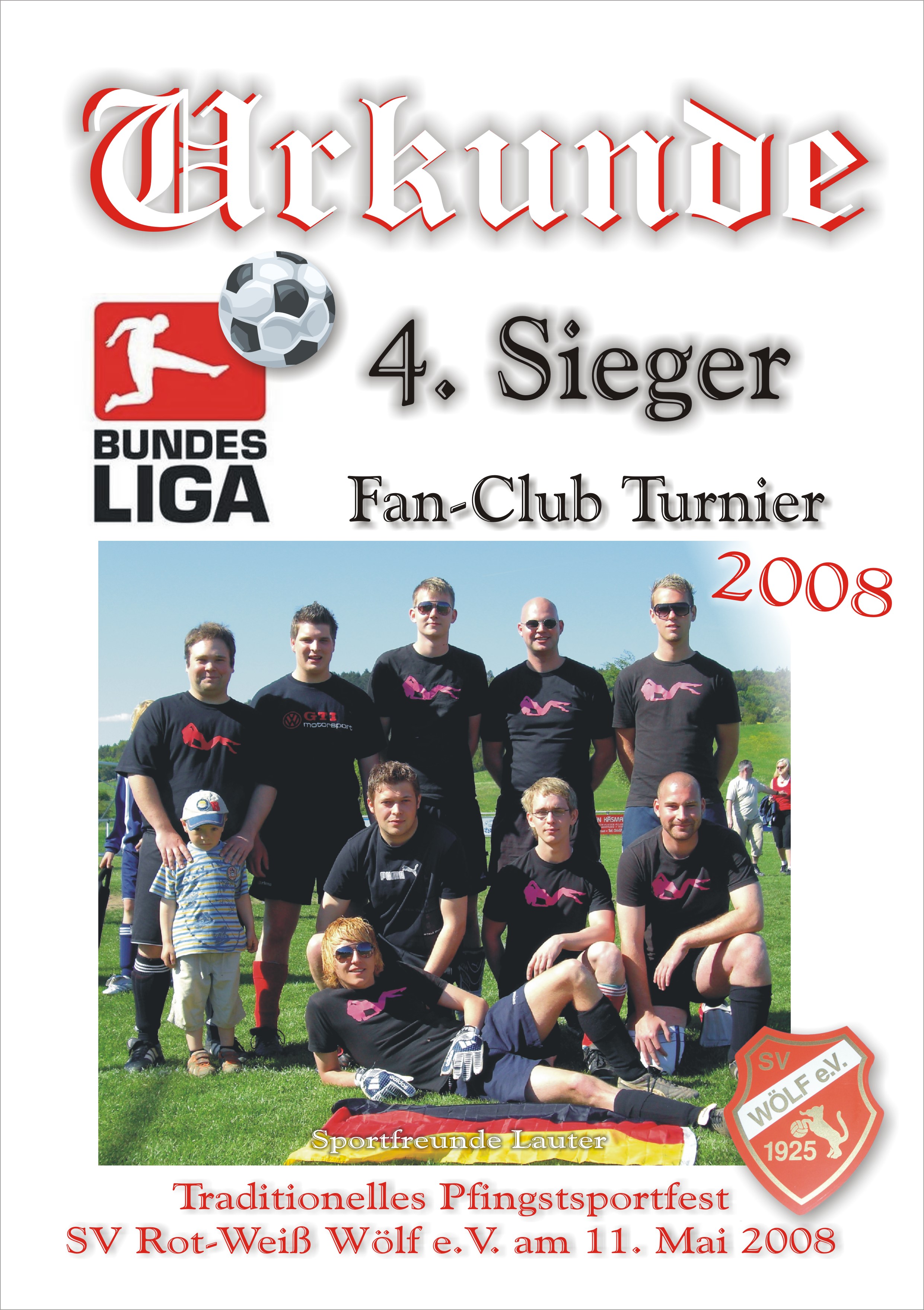 Urkunde 1. Sieger Fan-Club Wölf Bundesliga Fan-Club Turnier |