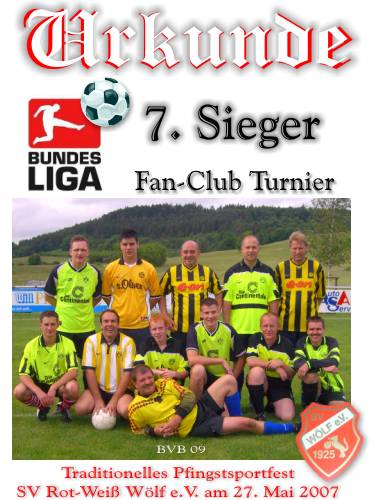 Urkunde 7. Sieger Fan-Club BVB 09 Bundesliga Fan-Club Turnier |