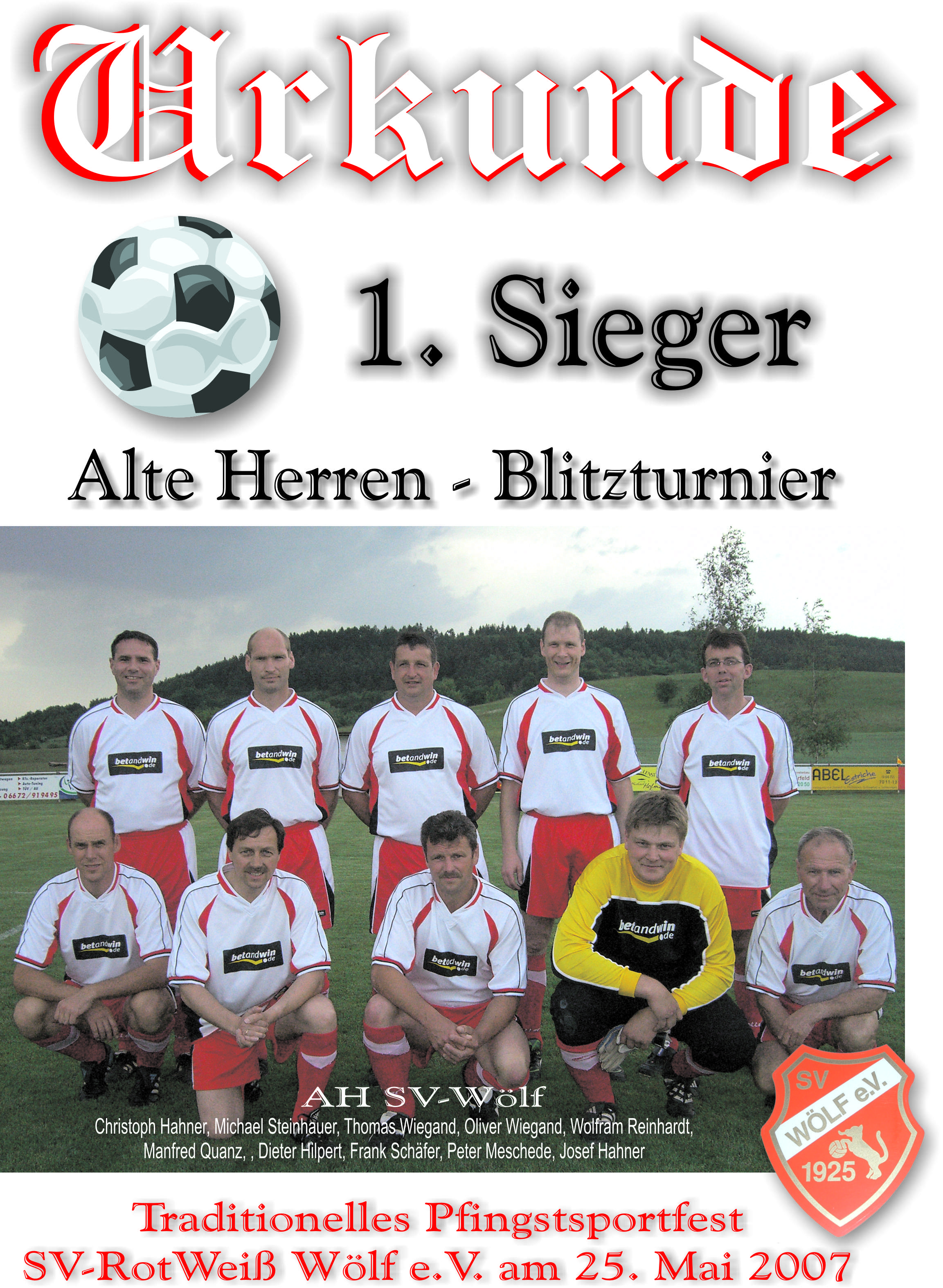 Siegerurkunde-AH-Wölf.jpg 1,4MB | "Gegen die Gegner schaffen wir das nie, die sind zu stark".. sagte der Älteste Josef Hahner vor dem Turnier. | |