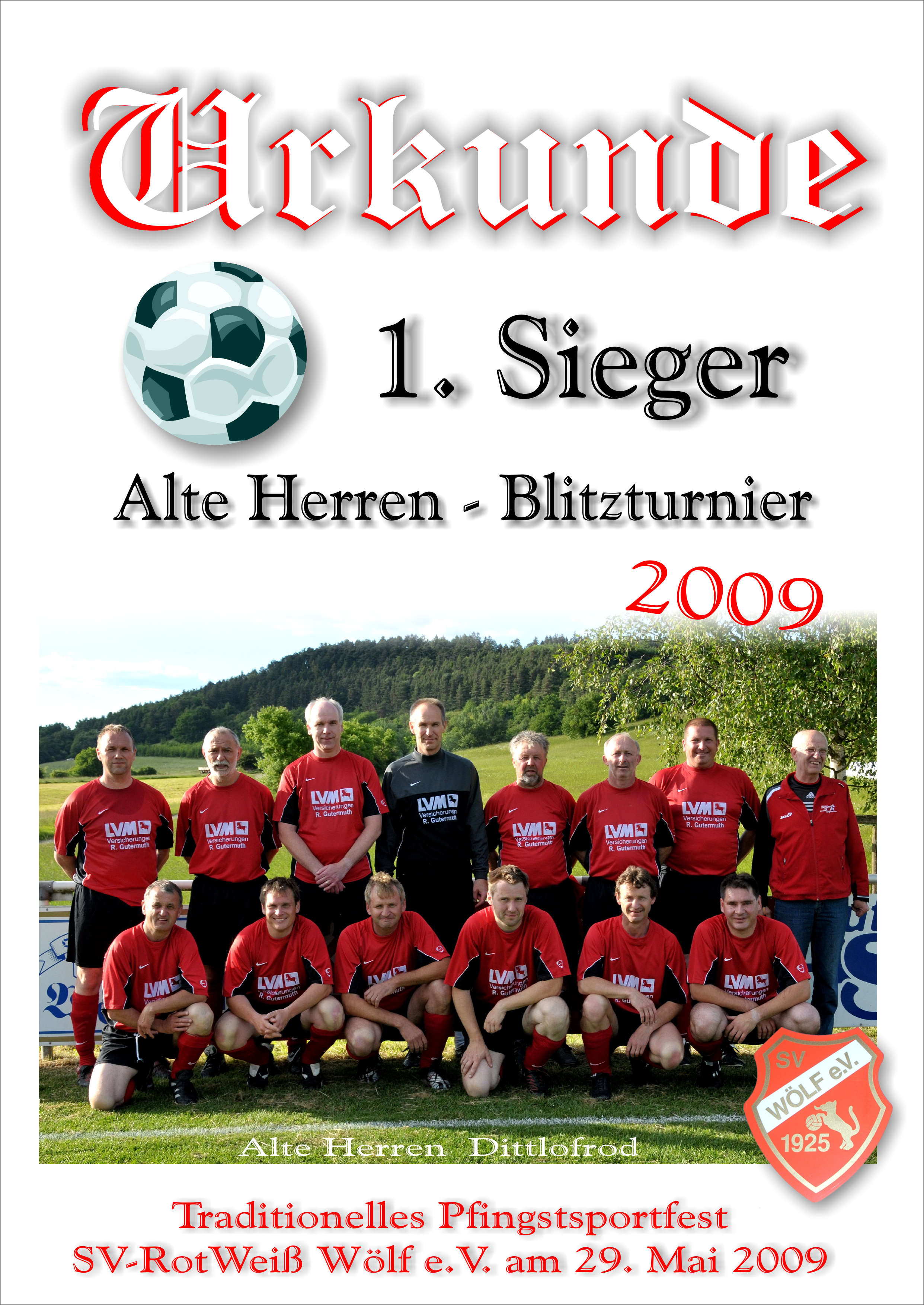 Urkunde 1. Sieger AH - SV-Wölf Alte Herren Blitzturnier |
